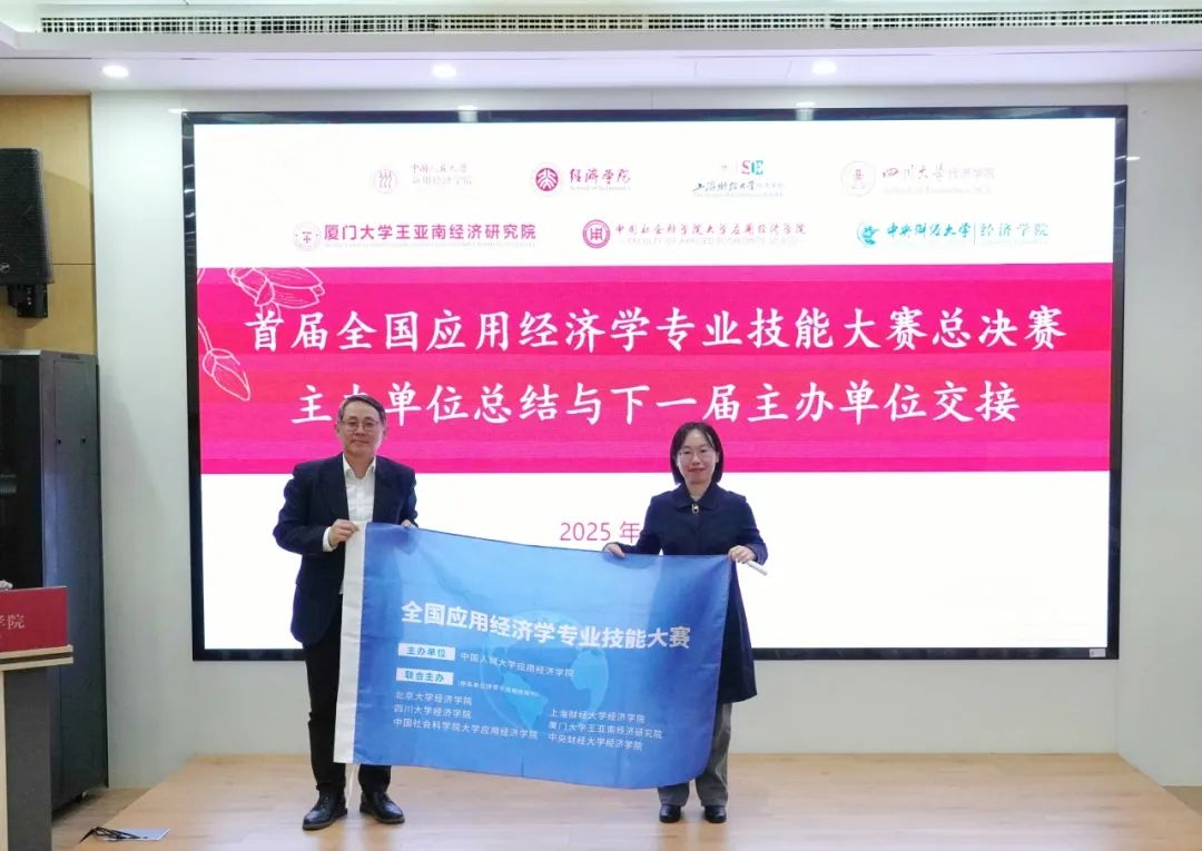 第一届全国应用经济学专业技能大赛的举办,是对各高校应用经济学教育成果的集中检阅,也是构建“课训-研训-会训-赛训-实训”学生学术训练体系的创新探索。随着大赛会旗交接至厦门大学,这场跨越南北的学术盛会将继续书写应用经济学领域的育人新篇章。