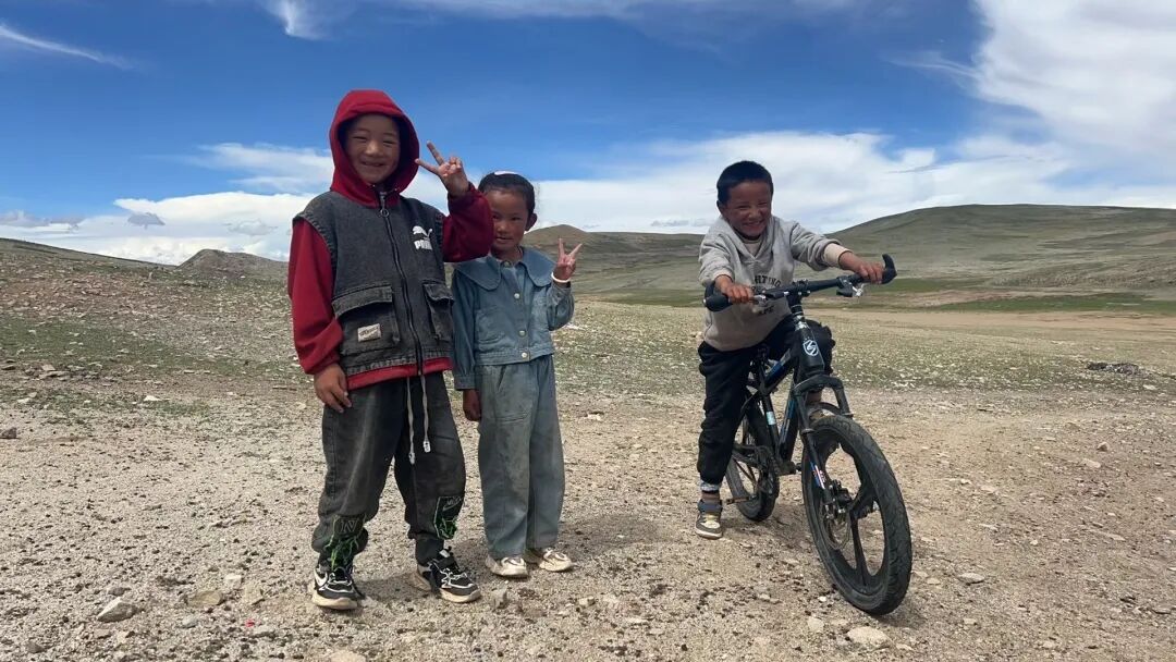 ▲班戈县马前乡嘎穷村儿童在户外玩耍