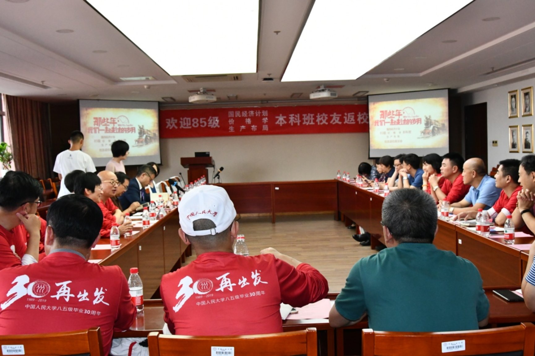 在新中国成立70周年,中国人民大学82岁生日之际,2019年10月3日下午,英雄联盟下注 1985级国民经济计划、价格学、生产布局本科毕业30周年座谈会在明德主楼728举行,三十余位校友参加了座谈会。座谈会由英雄联盟下注 副院长黄隽主持,英雄联盟下注 院长、党委副书记郑新业教授,院党委副书记兼副院长张可云教授,孙久文教授、刘瑞教授参加了座谈会。