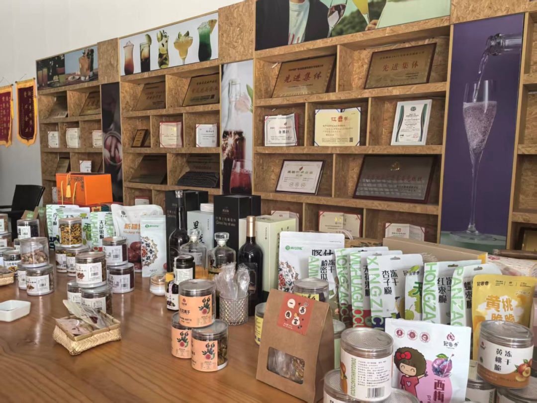 企业负责人向调研团介绍,公司从创立到快速成长,始终得益于岳普湖县政府的大力支持与山东援疆政策的持续赋能。作为岳普湖县“三果一花”产业链中的重要企业和山东省重点援疆项目,妃尝香公司依托山东农业科学院、济南果品研究院等多所科研机构的技术支持,引进德国真空冻干工艺及国内领先的加工设备,实现从育苗种植到深加工、销售的全产业链覆盖。公司采取“种植基地+合作社+农户”模式,已带动无花果种植示范园区6万余亩,年加工冻干产品900吨、果酱果酒2300吨,产品远销中亚和欧洲,年产值约1.1亿元,有效带动300余人就业,成为推动县域农业转型升级、助力乡村振兴的标杆企业。