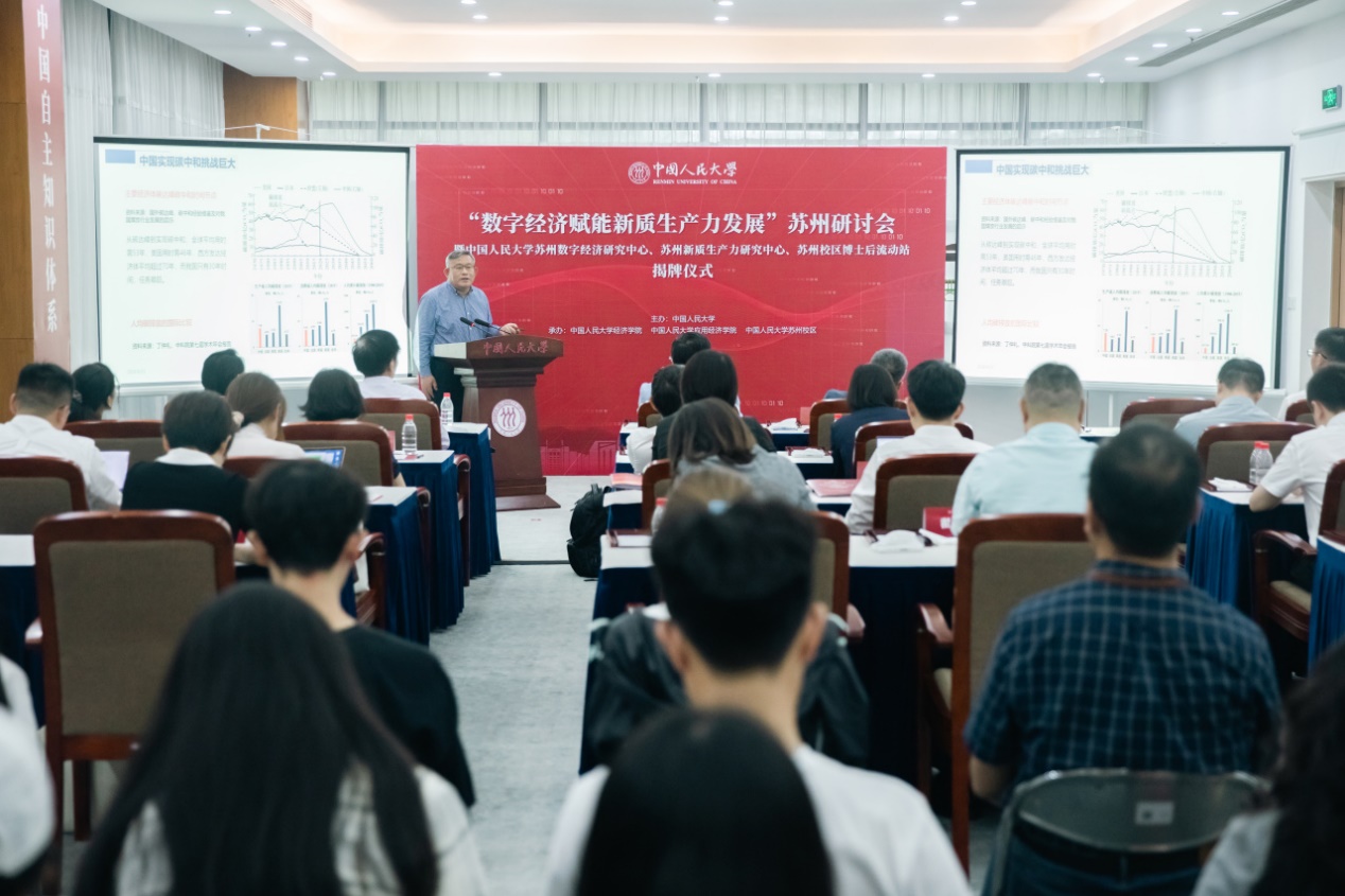 为积极响应即将召开的二十届三中全会,因地制宜加快发展新质生产力,6月21日,“数字经济赋能新质生产力发展”苏州研讨会暨中国人民大学苏州数字经济研究中心、苏州新质生产力研究中心、苏州校区博士后流动站揭牌仪式在中国人民大学苏州校区举办。