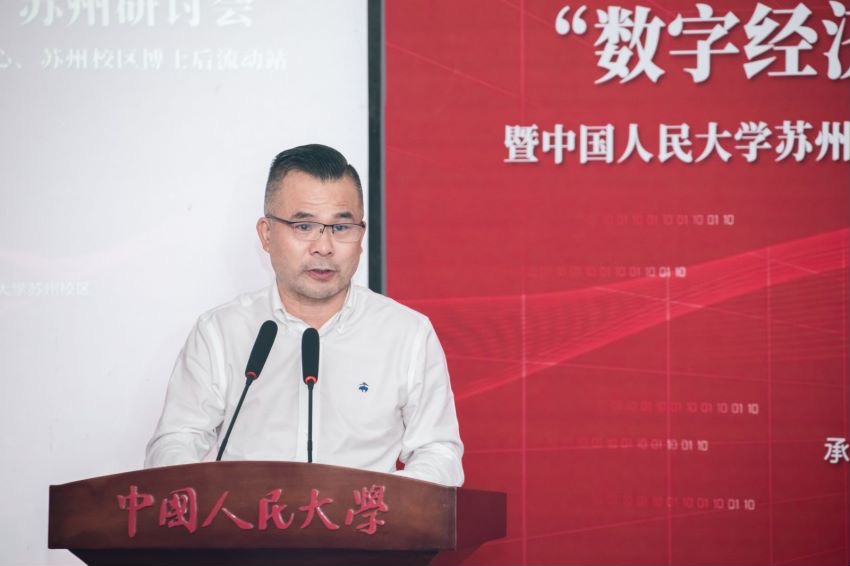 查颖冬在致辞中指出,数字经济是推动新质生产力发展的重要引擎,也是助力高质量发展的有力抓手。当前,苏州正扎实稳健推进中国式现代化苏州新实践。苏州拥有万亿级的电子信息产业,具备发展数字经济的良好基础和先发优势。近年来,苏州持续夯实数据底座,加快推动数字产业化,推进产业数字化转型,取得了显著成效。查颖冬表示,研讨会的举办和相关机构的成立,是校地双方深入践行新质生产力发展要求、推动双向奔赴的有力举措。苏州市将大力支持中国人民大学依托苏州的产业基础和实践样本持续深入开展研究,形成更多高质量研究成果,为谱写“强富美高”新苏州现代化建设新篇章提供重要理论支撑。