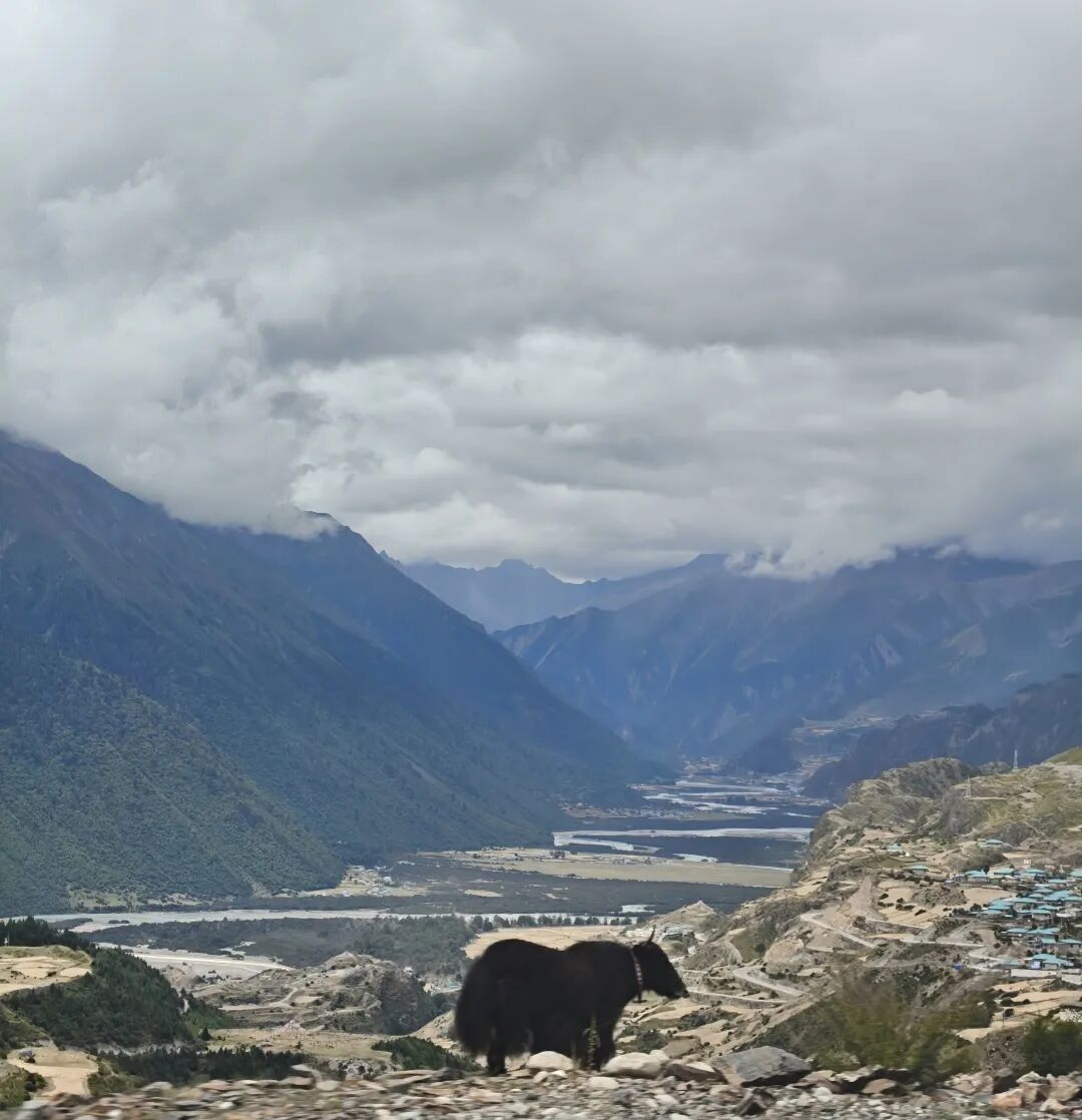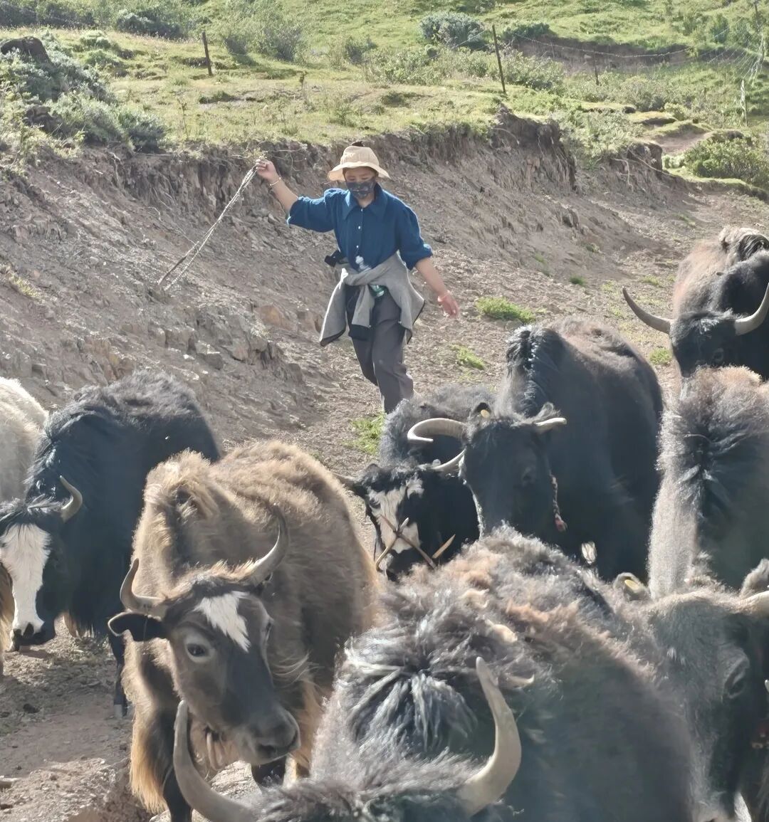 ▲前往边坝县路上偶遇赶牛的牧民