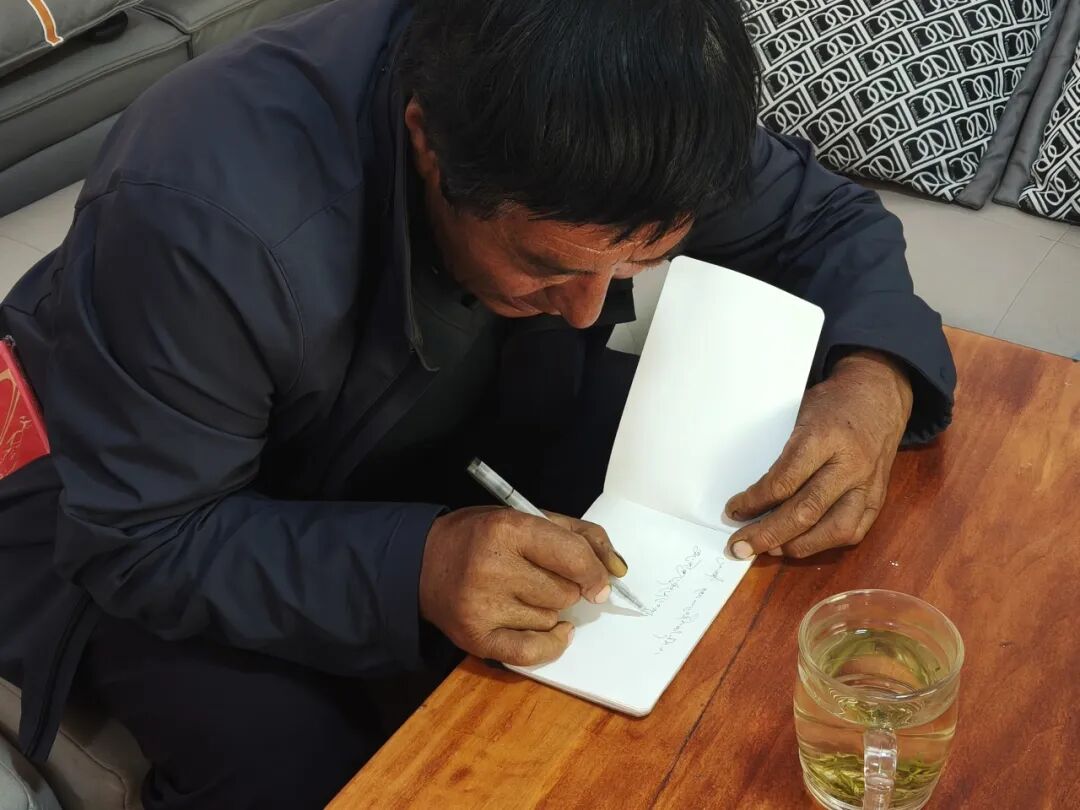▲马武乡人民政府乡长扎西次仁接受访谈后为团队留言