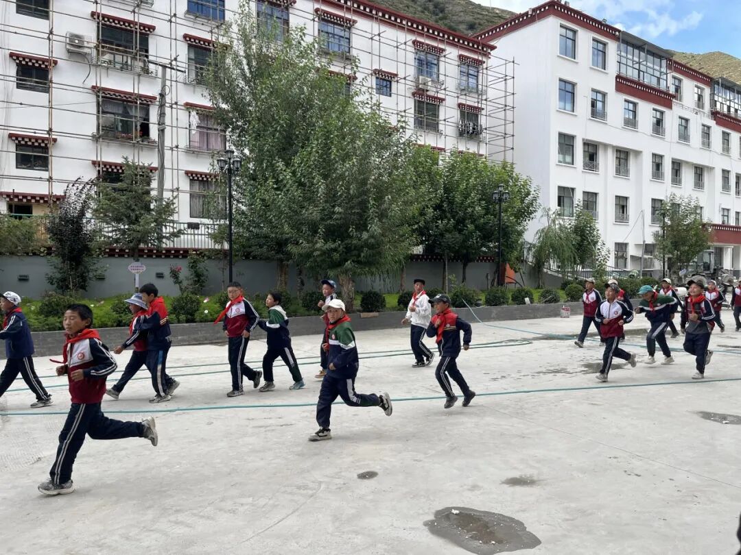 ▲边坝县第一小学课间奔跑的学生