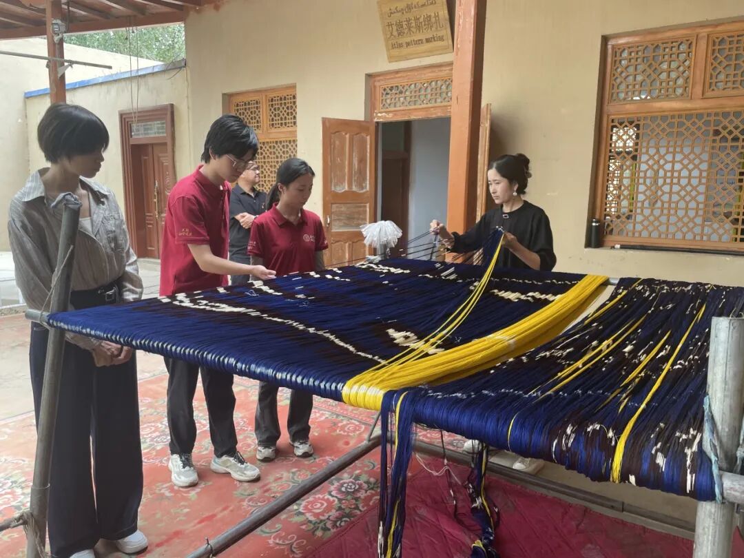 艾德莱斯绸织染技艺历史悠久,2008年被列入国家级非物质文化遗产名录。作为艾德莱斯绸的发源地,吉亚乡素有“艾德莱斯丝绸之乡”的美誉,但曾因传统编织工艺耗时长、收益见效慢,年轻从业者日渐减少,用于养蚕的桑树被核桃树、枣树替代,机杼声渐歇,这项传统技艺一度面临失传窘境。