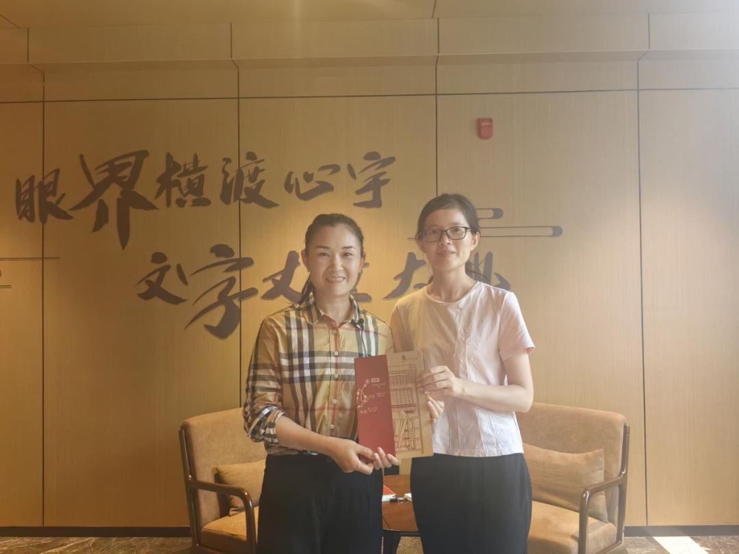 ▲王雨桉向富川瑶族自治县农业农村局局长(原乡村振兴局局长)尹宁赠送纪念品