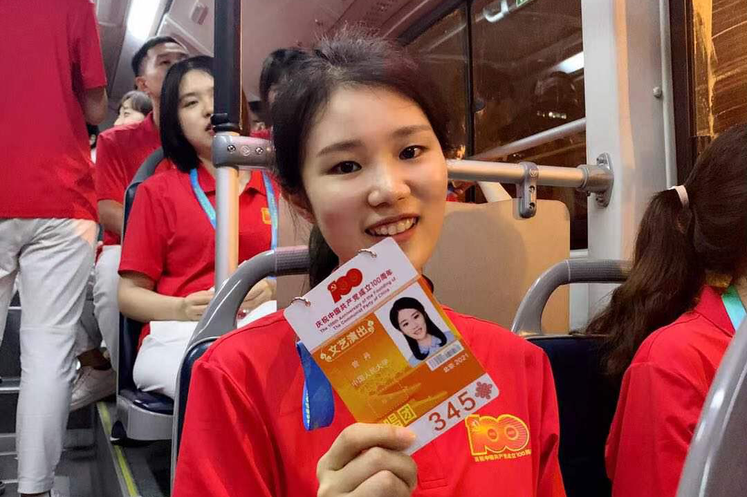能作为志愿者参与到文艺演出活动中,我觉得非常荣幸。百年征程波澜壮阔,百年初心历久弥坚。文艺演出以时间为轴,展现了一代代共产党人团结带领全国各族人民从站起来、富起来到强起来的过程。穿越时空的画面和歌声,展现的是共产党人接续奋斗的信念。作为九千五百多万党员的一份子,作为十四多亿中国人的一份子,我感到非常骄傲。