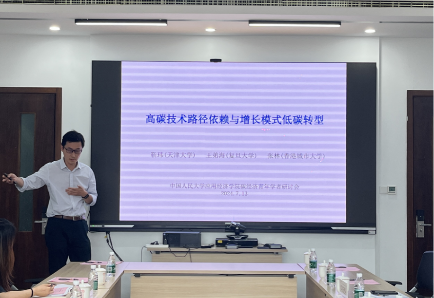 7月13日,英雄联盟下注-英雄联盟博彩 “碳经济青年学者研讨会”暨“发展新质生产力 推动高质量发展”高端研讨会(第7期)举办。中央财经大学国际经济与贸易学院副院长段玉婉教授、天津大学马寅初经济学院靳玮副教授、清华大学地球系统科学系同丹副教授、北京航空航天大学经济管理学院谢杨副教授、对外经济贸易大学国际经济贸易学院刘梦迪副教授、厦门大学中国能源政策研究院杜克锐副教授、湖南大学经济与贸易学院吴施美副教授,英雄联盟下注-英雄联盟博彩 院长魏楚教授、副院长陈占明教授, “碳经济”团队陈浩、梅应丹、孙频等参加会议。会议由应用经济学院能源经济系主任宋枫教授主持。