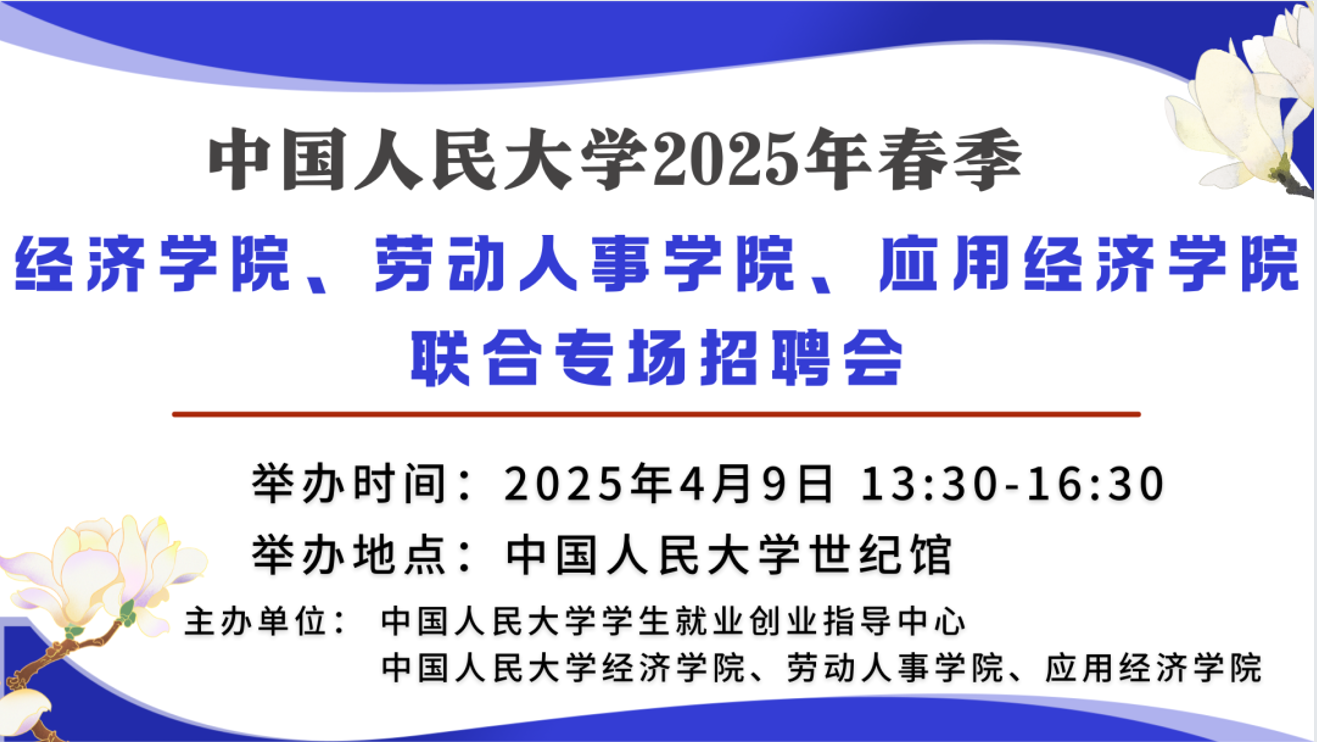 单位邀请函 | 【4月9日13:30】中国人民大学2025年春季经济学院、劳动人事学院、英雄联盟下注 联合专场招聘会