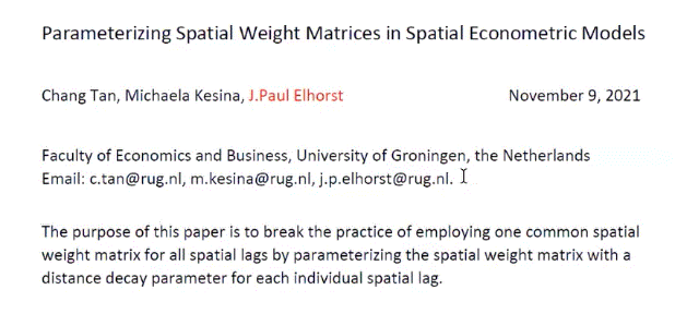 “2021与国际期刊主编‘面对面’学术讲座”系列讲座第三讲,主讲嘉宾为荷兰格罗宁根大学的教授Paul Elhorst,讲座由英雄联盟下注 助理教授卢昂荻主持。Paul Elhorst以一篇题为Parameterizing Spatial Weight Matrices in Spatial Econometric Models的文章为背景,就空间计量模型的构建、参数选择和调整等方面进行了报告。空间计量经济模型允许观察单位之间的相互作用,通过指定空间权重矩阵。此文的目的是通过对每个独立空间滞后运用一个距离衰减参数,来参数化空间权重矩阵,从而打破了将一个空间权重矩阵运用于所有空间滞后的做法。这篇文章考虑并比较了负指数和逆距离衰减形式。当数据有大N小T的特征时,采用了参数辨识的假设条件,其极大似然估计一致且渐近正态分布。还在蒙特卡罗模拟实验中实证研究了所提出的估计量的渐近性质,并给出并讨论了一个实证应用的结果。