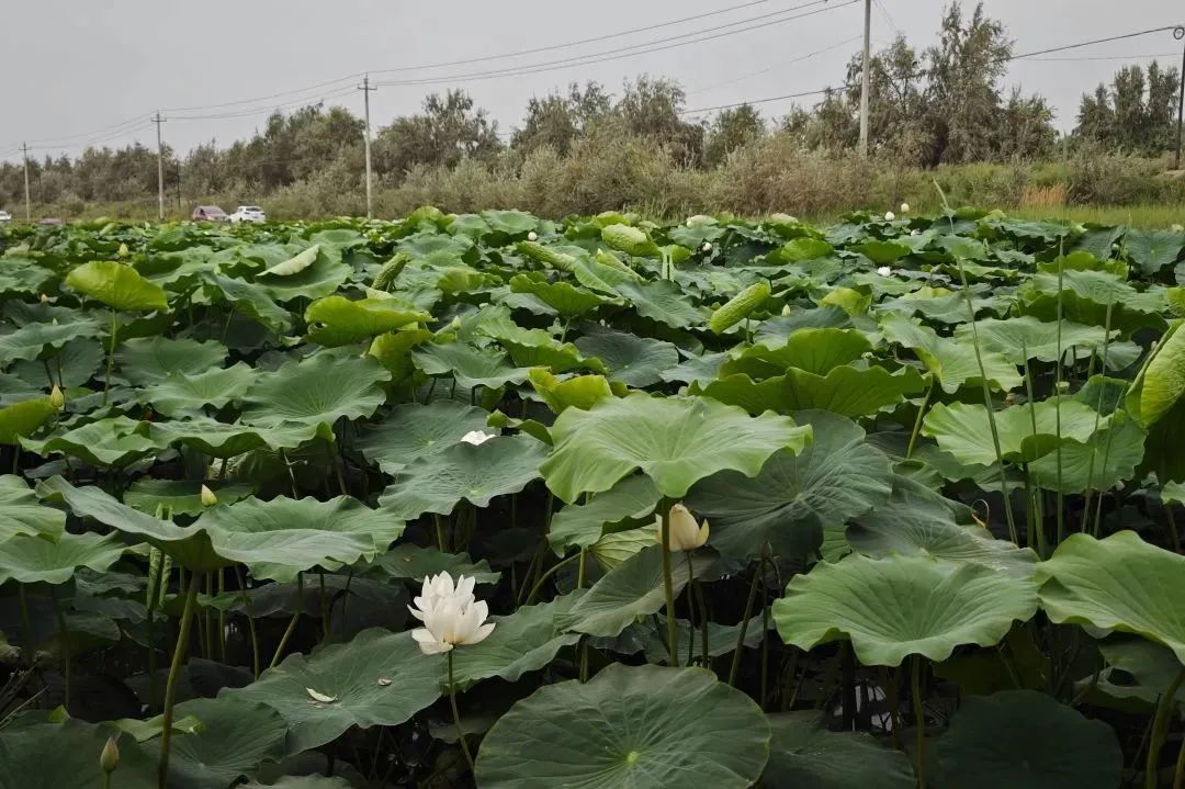 同样在莎车县依盖尔其镇阔纳先拜巴扎村,访谈团欣喜地看见新疆少见的江南景象:成片的白荷一望无际,茂密的水稻欣欣向荣,长长的豇豆铺满广场。由于水稻、豇豆这些作物在周围其他地方少有种植,或者只能在成本高昂的大棚中培育,因此当地的这些林果蔬菜常年供不应求,不愁销路。为了充分发挥活水优势,该村大量采用林粮间作、林下套种的方法:在豇豆底下种白菜,巴旦木底下种黄豆,真正将水库变为“生命库”,将河滩变为“种植园”。