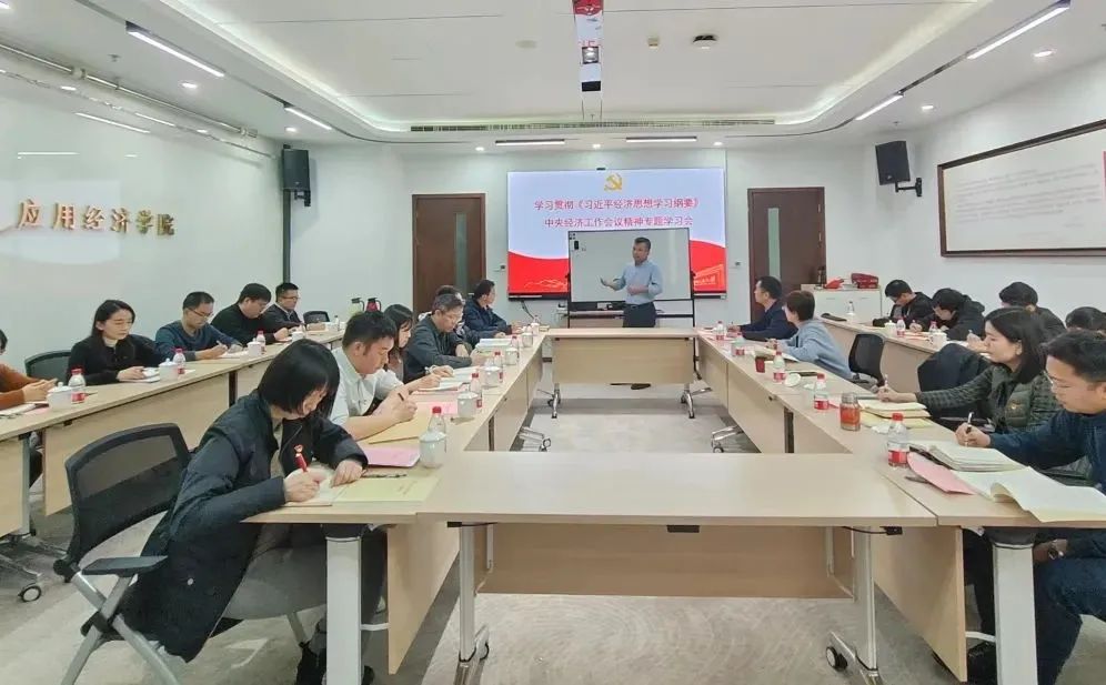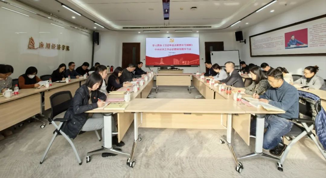 12月29日下午,英雄联盟下注 召开专题学习会议,学习贯彻《习近平经济思想学习纲要》、中央经济工作会议精神,并结合学科特色和学院工作开展研讨。中国人民大学党委常委、副校长、英雄联盟下注 院长郑新业领学,学院党委委员、管理团队成员、党支部书记、系所主任、教研室主任、行政科室负责人等参加会议。