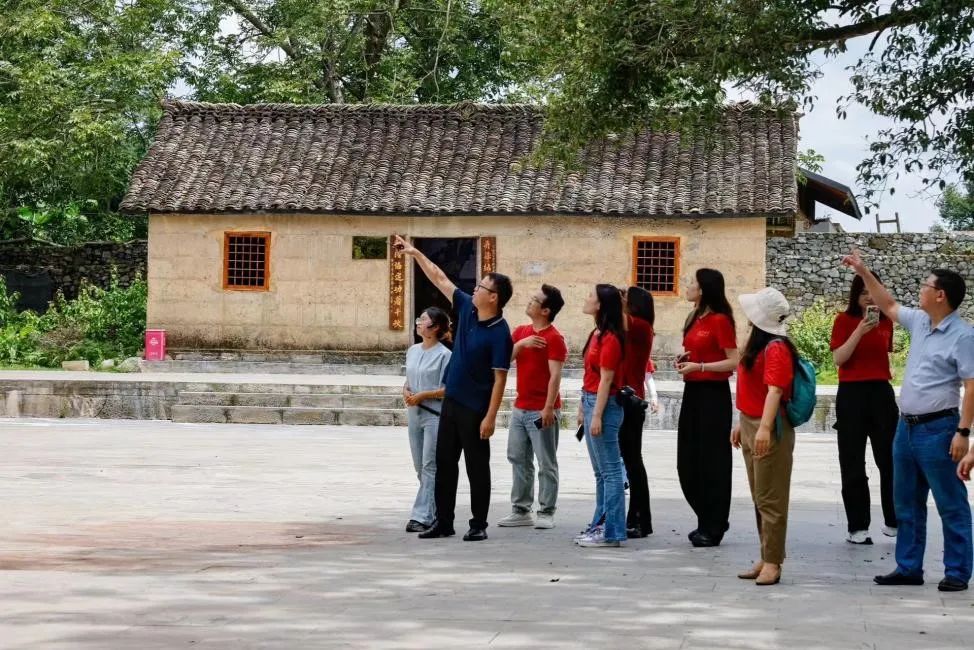 ▲调研团在弄染村革命先烈陆瑞光的生平