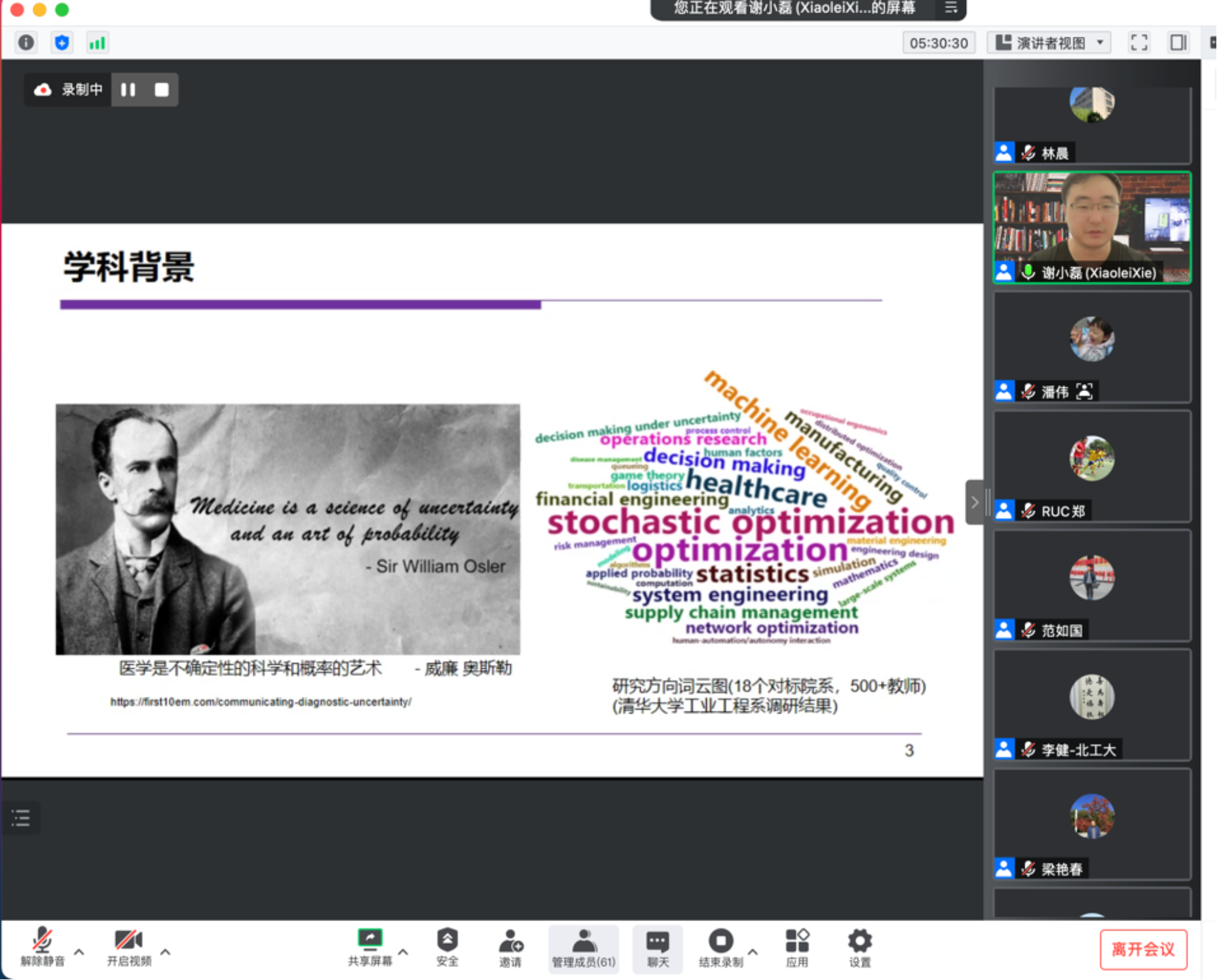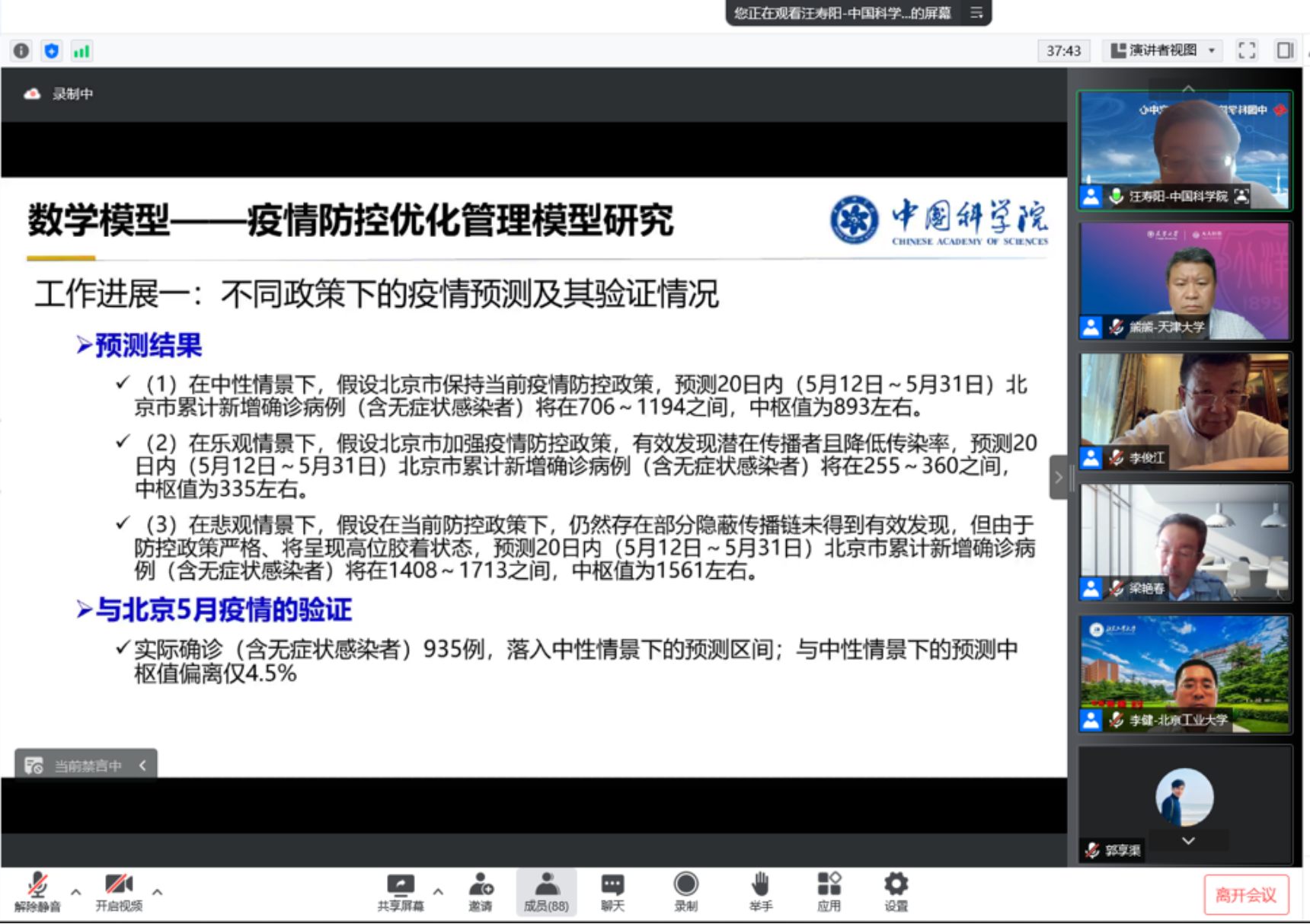 会议共邀请了16位领域专家进行了系列报告,其中特邀报告嘉宾中国科学院预测科学研究中心主任汪寿阳院士、中国科学院大学经管学院刘颖副教授、武汉大学经济与管理学院范如国教授、电子科技大学邹权教授、英雄联盟下注-英雄联盟博彩 刘硕杨副教授围绕新冠疫情防控和应急医疗相关内容作相应报告;澳门科技大学药学院院长朱依谆教授、清华大学自动化系汪小我教授、天津大学管理与经济学部熊熊教授、复旦大学类脑智能科学与技术研究院赵兴明教授、中南大学计算机学院李敏教授针对健康诊疗过程中的计算机应用和人工智能算法分析领域问题作相应报告;中国人民大学科研处处长林晨教授、清华大学工业工程系谢小磊副教授、北京工业大学区块链研究中心主任李健教授、西安交通大学管理学院刘汕教授、英雄联盟下注-英雄联盟博彩 刘逸楠助理教授、中国民航科学技术研究院胡金硕副研究员针对健康产业数字化转型等热点交叉问题作相应报告,会议的研讨过程对于推动健康产业数字化和智能化起到了极大的积极作用。
