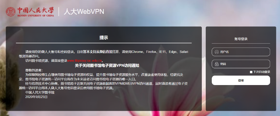 (3) 中国人民大学VPN,校外也能轻松便捷登录系统。