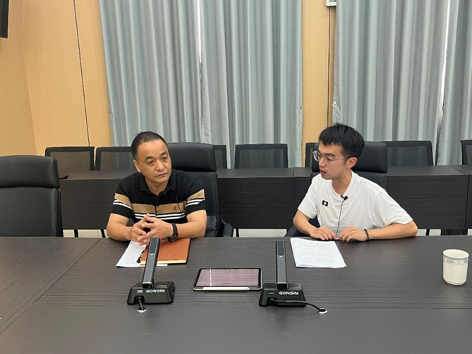 ▲刘燕妮访谈南沙镇桃园村委会那里村驻村第一书记卢奕辰