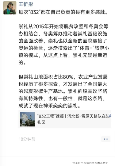“832工程”调研团的成员们在朋友圈写下了他们调研中的故事,一张张照片展示着神州大地的壮美山河与焕然一新的农村景象,一则则访谈故事讲述着扶贫干部与脱贫户感人至深的过往……脱贫攻坚的成果在此刻具象化地展现在大家面前。