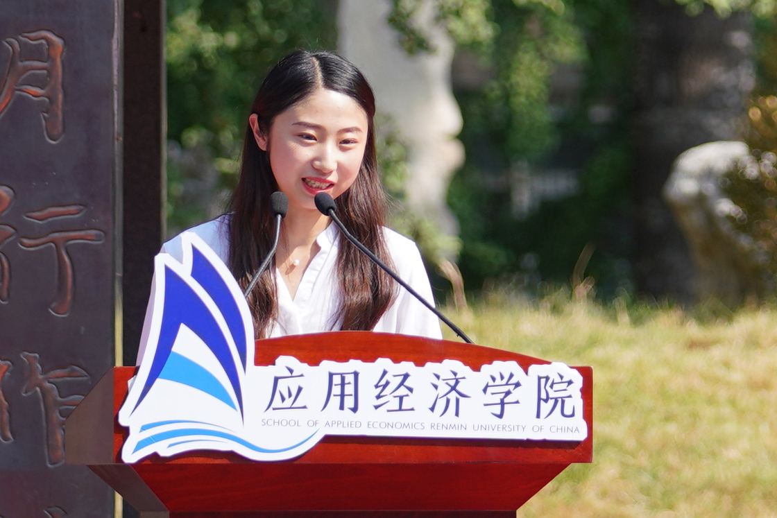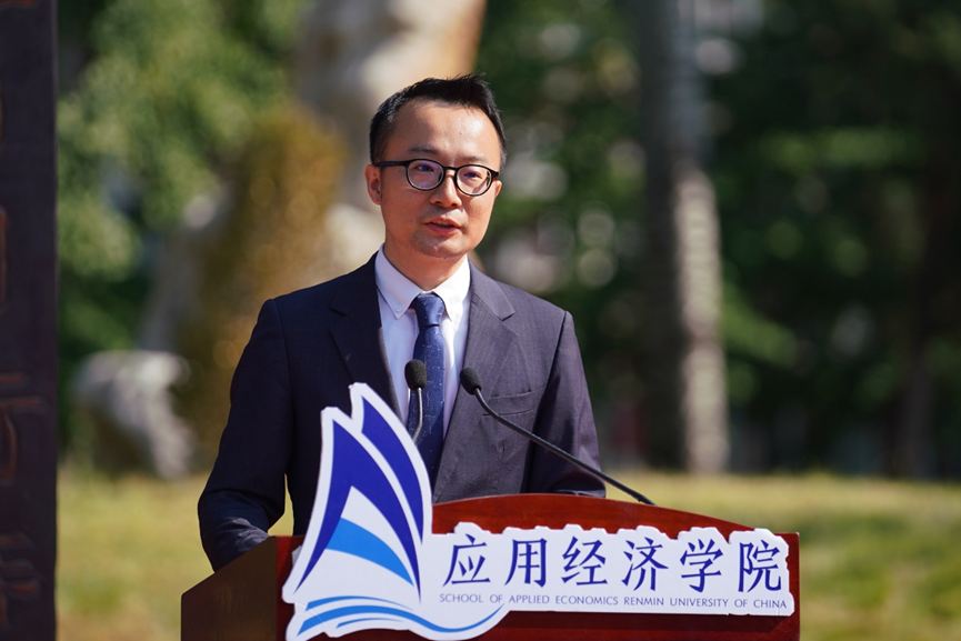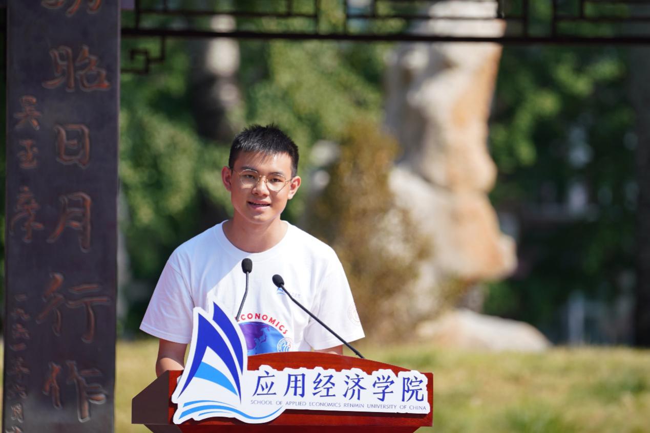 黄隽作为资深教师、导师代表发言,期望同学们一方面要学习专业本领,开拓视野,掌握技能;另一方面陶冶情操,积极参加学校各种文体活动,挖掘潜质和才艺。鼓励大家相互融合、相互促进,同时互谅互让、勇于奉献,希望同学们感受人大的文化和精神,成为有家国情怀、有高尚的情操,脚踏实地的共和国建设者。
