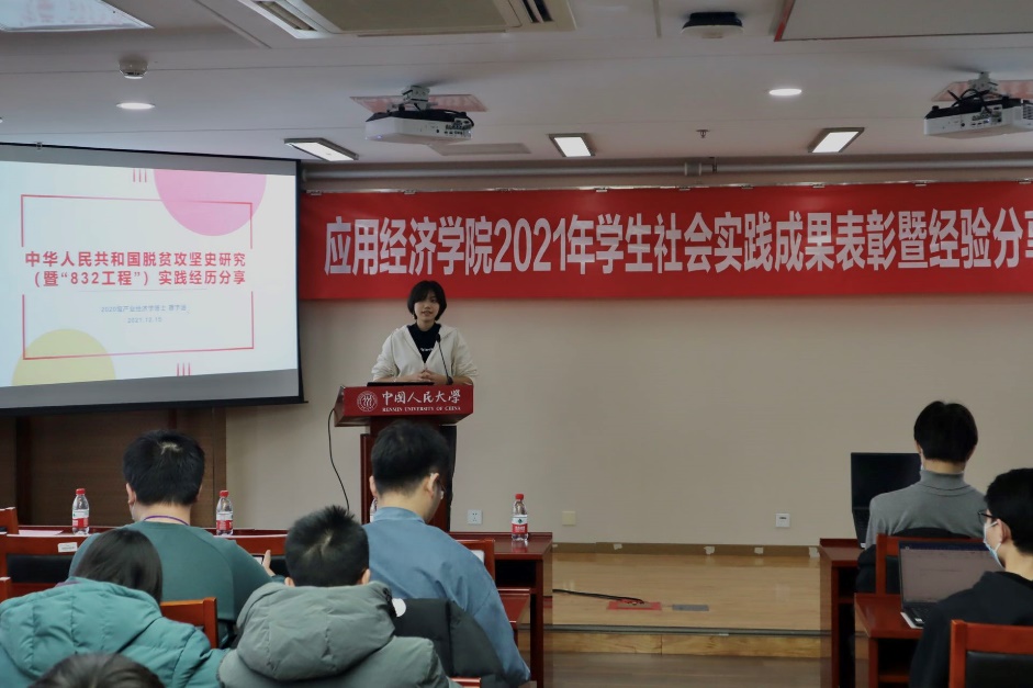 12月15日,学院举办“百年奋斗铸精神,扎根中国育三有”2021年学生社会实践成果表彰暨经验分享会,对本年度取得优秀实践成果的应经学子进行表彰,并邀请优秀学生代表分享参与社会实践、开展学术研究的经验。学院党委副书记裴建锁主持会议。