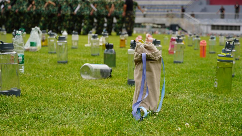 是草坪上躺平的大水杯,