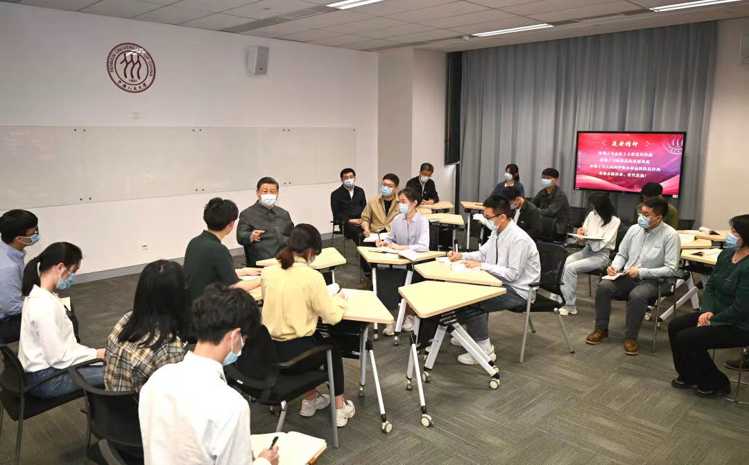在五四青年节前夕,习近平总书记25日上午来到中国人民大学,先后走进思政课智慧教室、博物馆、图书馆,了解学校促进思政课教育改革创新、学校历史沿革、教学科研成果、加强文献古籍保护利用和促进理论研究成果转化应用等情况,并主持召开师生代表座谈会。
