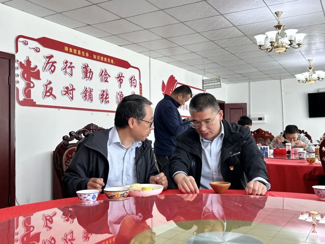 ▲魏楚教授与南木林县委书记赵兵在早餐时间交流