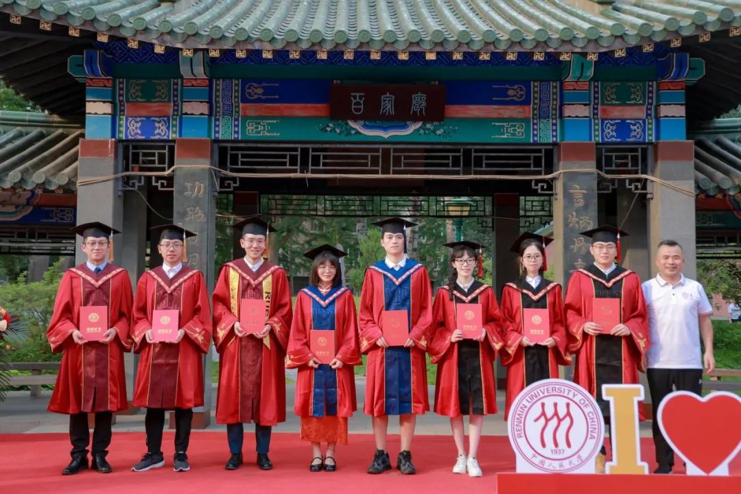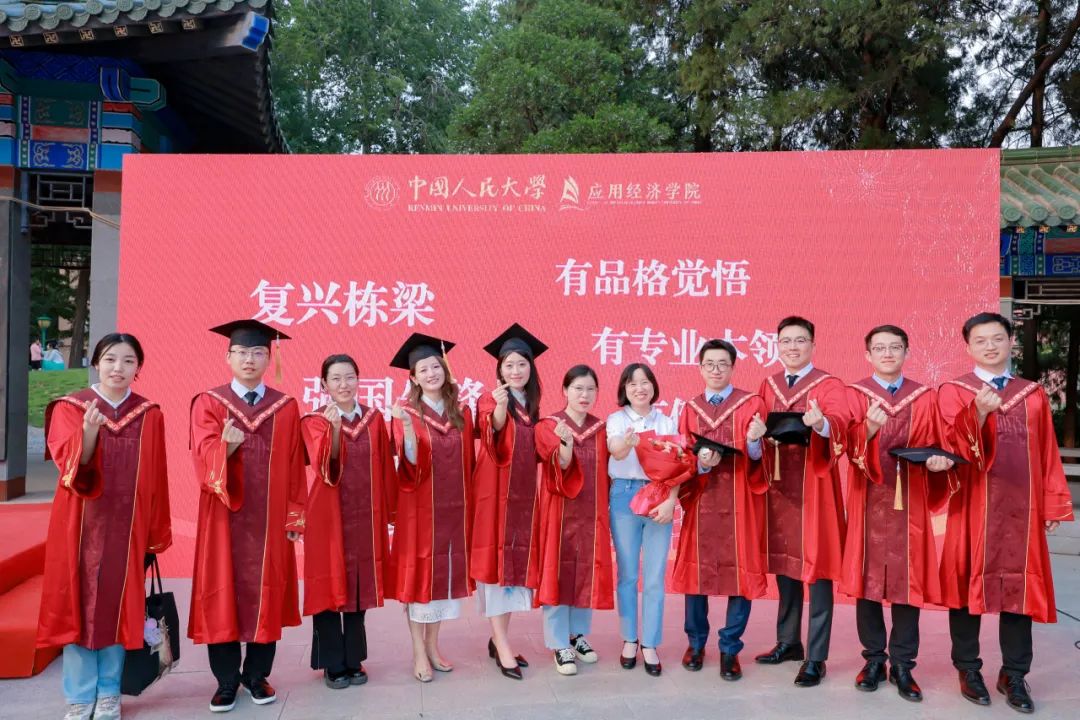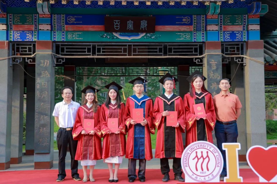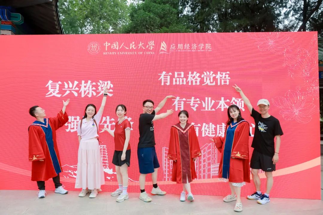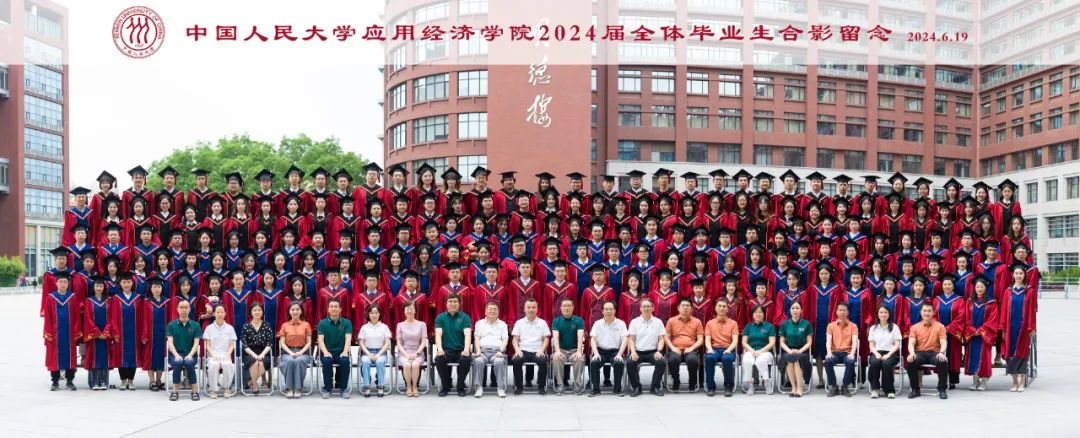 中国人民大学副校长郑新业、支晓强,学校机关部处相关负责人,英雄联盟下注 教职工代表与全体2024届毕业生在明德广场合影留念。