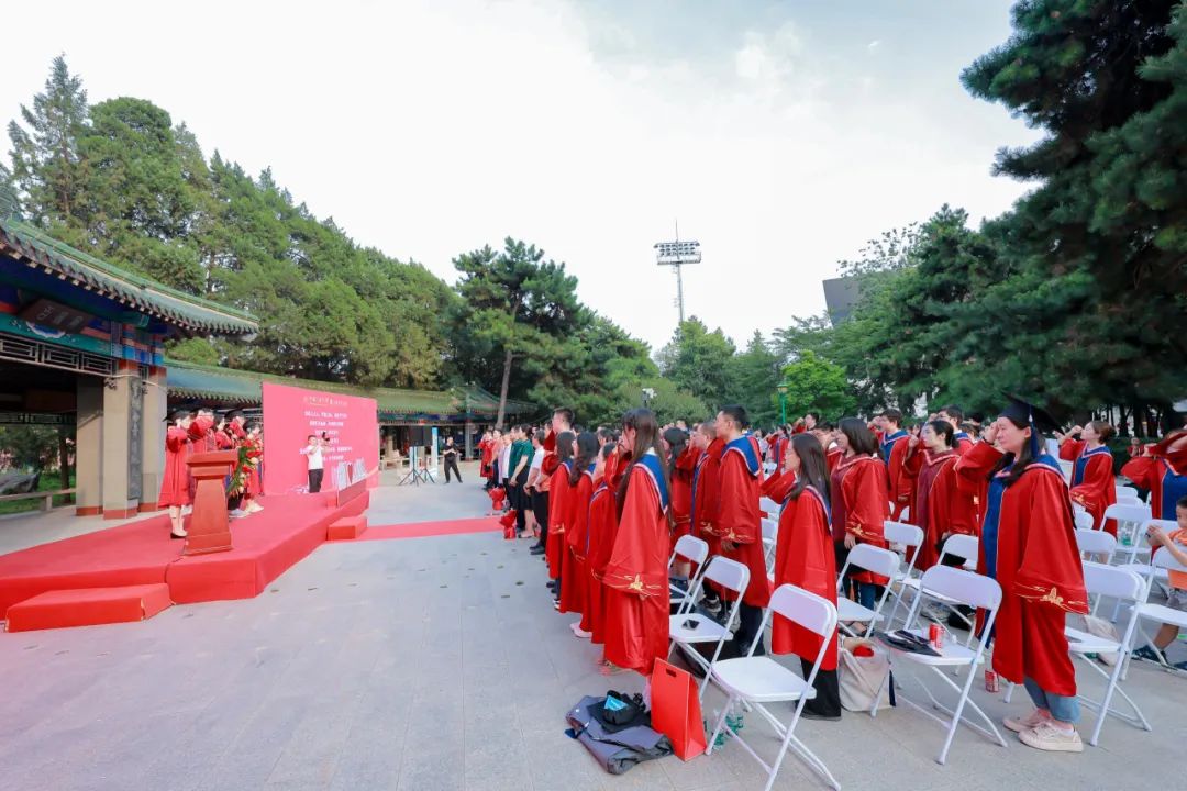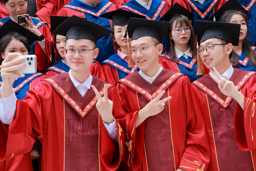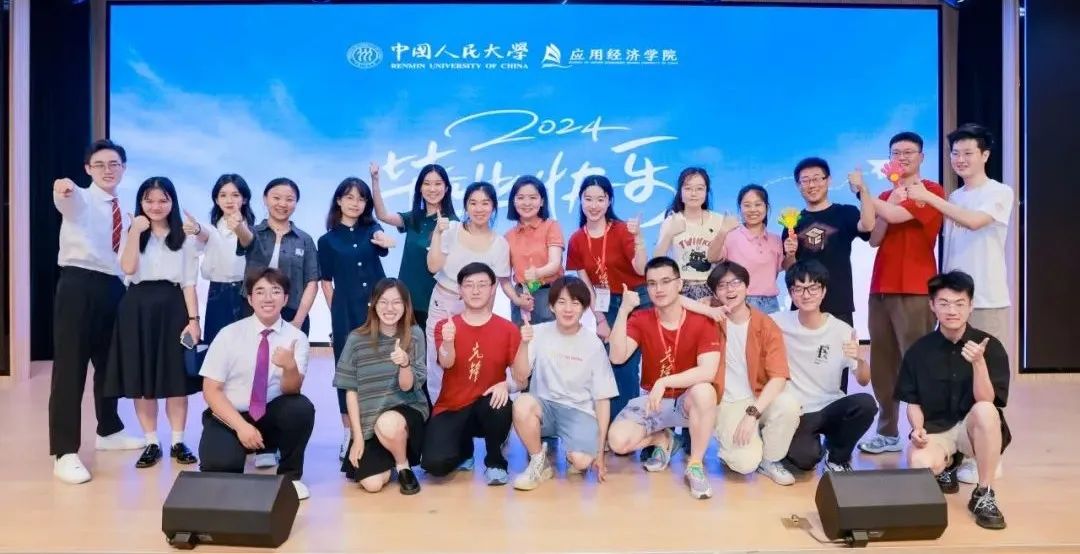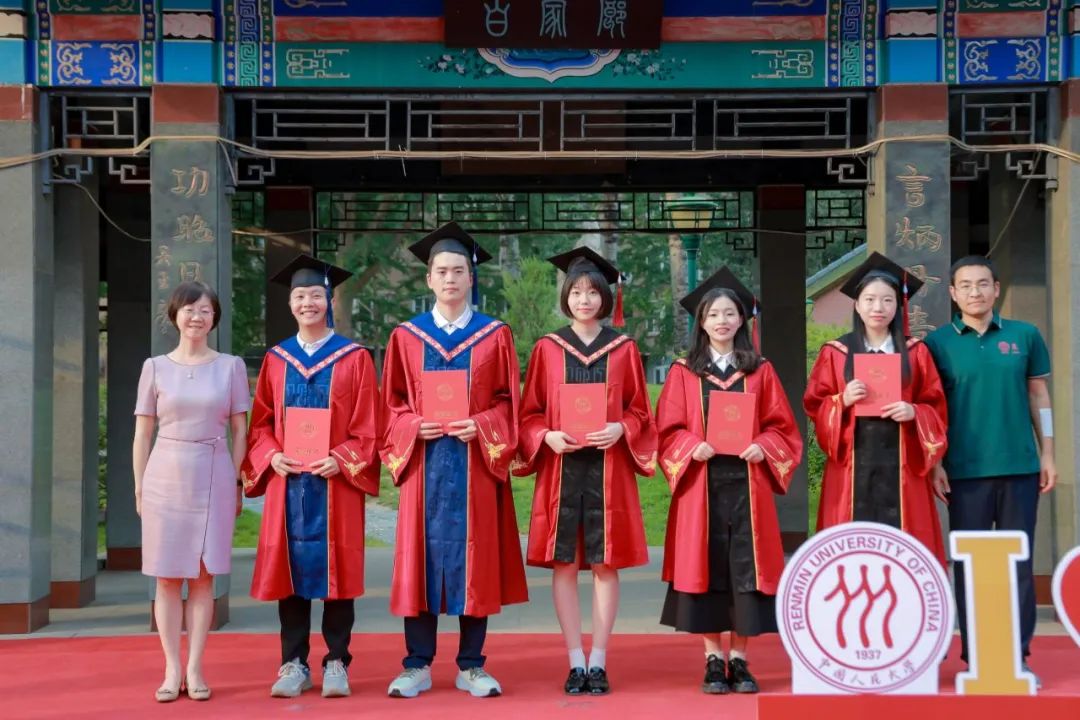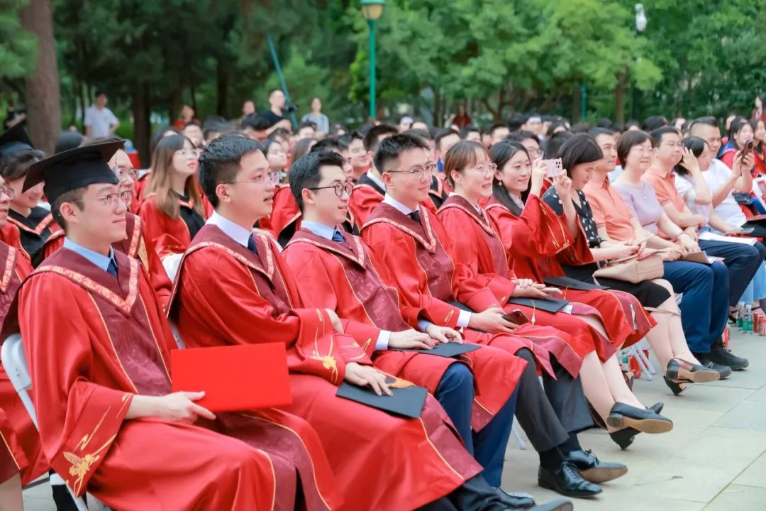 中国人民大学副校长郑新业、支晓强,学校机关部处相关负责人,英雄联盟下注 教职工代表与全体2024届毕业生在明德广场合影留念。