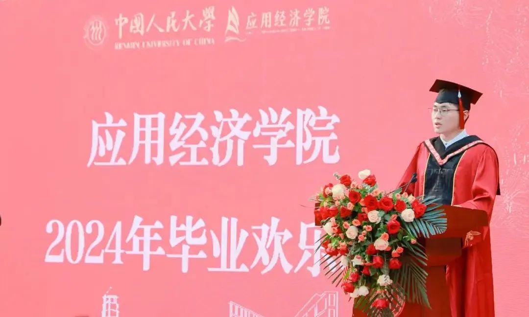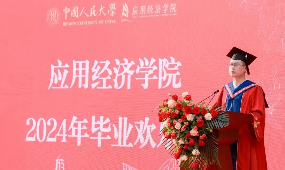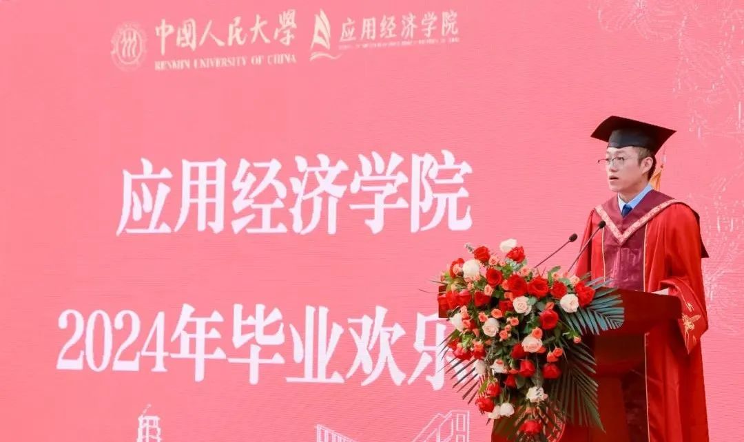 本科生毕业生代表祝栗绚齐以《行在中国大地,“三有”铸就青春》为题发言。他表示在未来的学习生活中,从实践中求得真知,从合作中收获友谊,从追求中迸发力量。