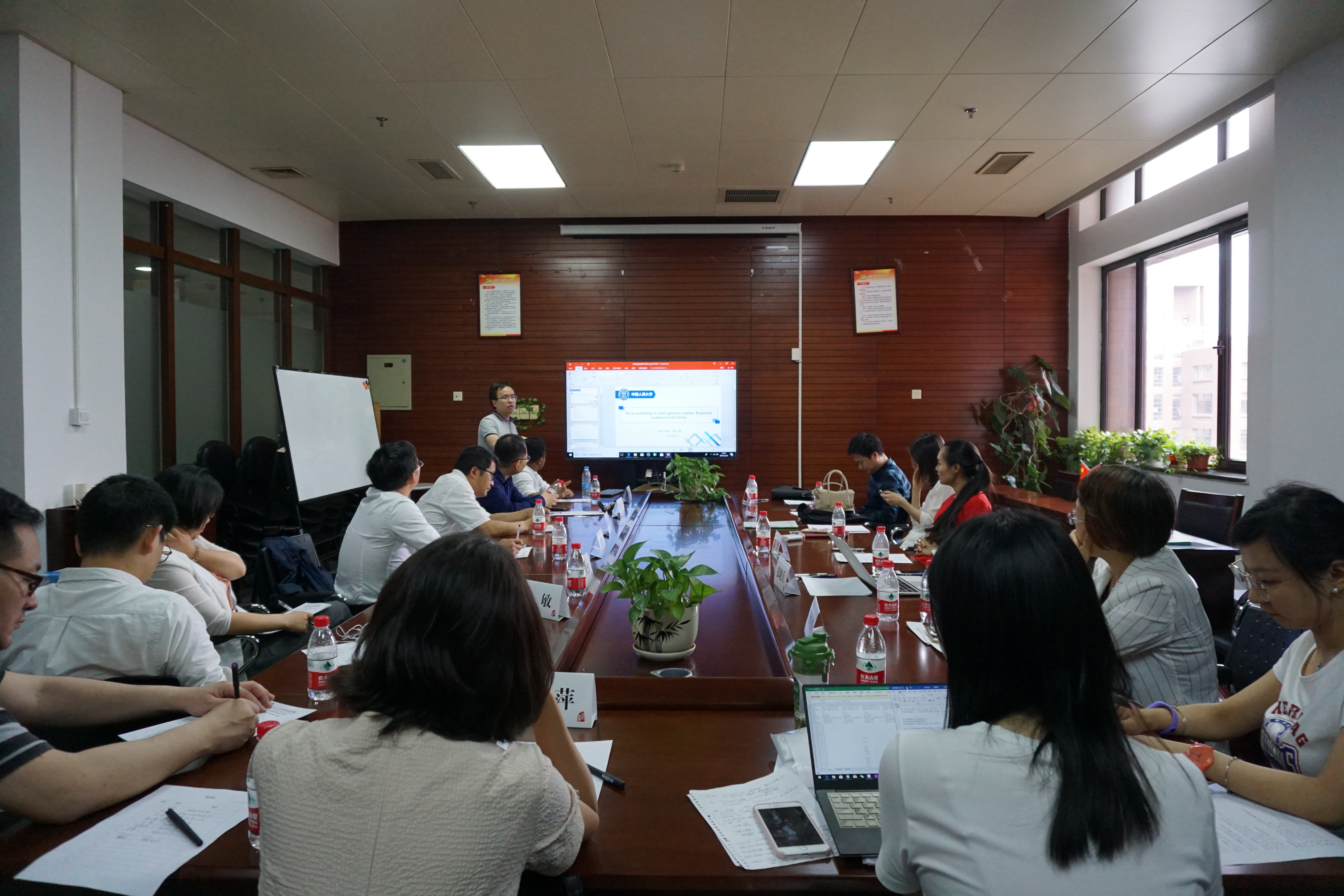 第二阶段的活动中,来自北京高校的专家学者分别就近期研究成果进行交流,北京科技大学Jean Tsitaire Arrive、北京工商大学杨晓华、首都经贸大学李鲲鹏以及我院张晓兵老师分别就近期研究成果“Corporate social responsibility towards sustainable business development”“北京二氧化碳排放因素分析:以北京市为例”“动态因子模型与预测汇报了其近期研究成果”“Price Competition in Retail Gasoline Market: Empirical Evidence from China”进行汇报,并与与会专家学者就相关问题进行深入讨论。