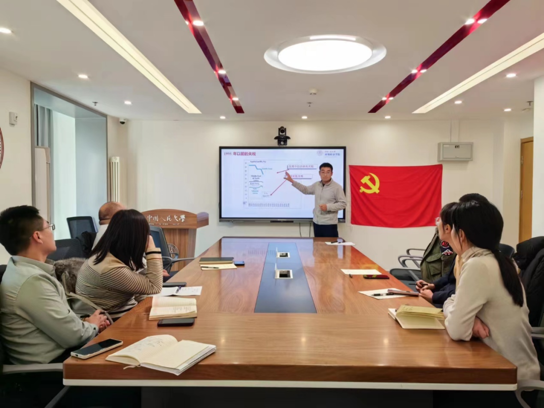 学院党委高质量落实新时代党的建设总要求和新时代党的组织路线。学院党委和各党支部在习近平总书记考察调研中国人民大学一周年之际,广泛开展党班团“先锋闯将大学习、大讨论”。通过探索“精品党课”“原典领学”等品牌,与全国样板党支部联学,与北京市东城区发改委开展“红色1+1”共建项目,开展主题讲座、学习研讨、参观调研、时事热评、知识竞赛等形式多样的主题党日活动,不断创新党支部活动的内容和形式,将支部建在学科上,将支部工作融入立德树人任务中,构建“三热合一”新格局。在广泛调研基础上,制作完成学院《党支部工作规范手册》《发展党员规范手册》,促进基层党支部标准化、规范化建设。