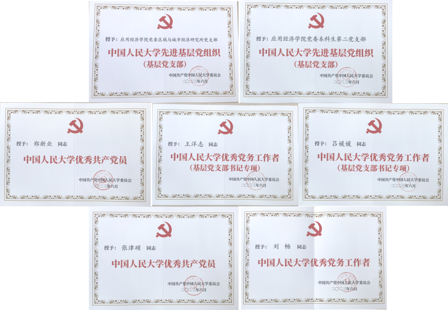 本年度,学院基层党建工作取得突出成效。产业经济学博士生联合党支部在北京市高校红色“1+1”示范活动展示交流中荣获二等奖。在学校2023年七一表彰中,学院7个集体和个人获得“两优一先”表彰。在学校“第三批校级党建工作标杆院系、样板支部和第一批校级研究生样板党支部、研究生党员标兵创建”工作评选创建中,学院党委入选校级党建工作标杆院系,3个党支部和个人入选样板党支部、党员标兵。学院教职工在首都教育系统学习党的二十大精神征文活动中获得教师组一等奖。