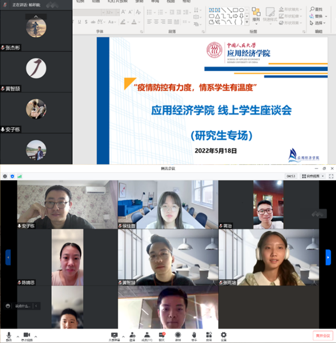 为深入学习领会和贯彻落实习近平总书记在中国人民大学考察时、在庆祝中国共青团成立100周年大会上的重要讲话精神,落实学校“四个一”要求与疫情防控工作精神,英雄联盟下注 于5月18日下午以线上形式召开“院长书记下午茶”暨学生代表座谈会,深入了解疫情期间同学们的思想动态、心理状况和学习生活情况,倾听学生的诉求和意见建议。学院2019级、2020级、2021级博士生代表和2020级、2021级硕士生代表参加线上座谈会,英雄联盟下注 安子栋副教授主持会议。
