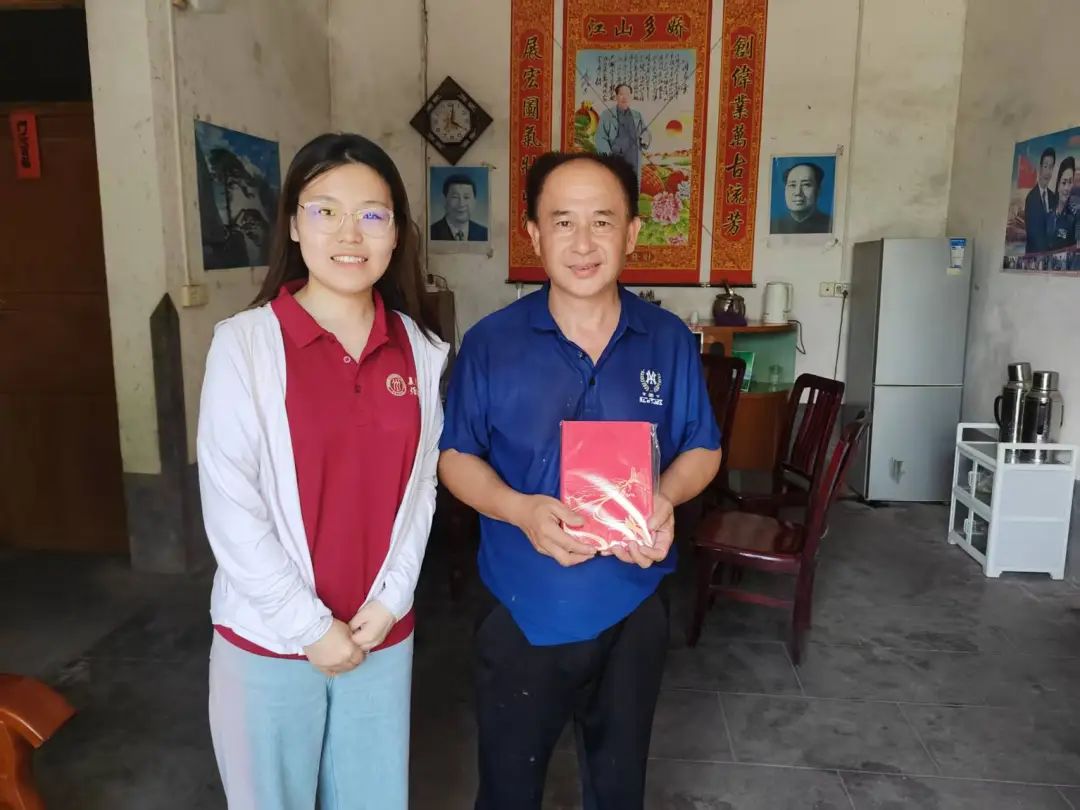 本科生王若岚与富湾村驻村书记黄书记交流乡村振兴经验。黄书记表示,富湾村以 “1356” 工作体系(推进生态、产业、文化融合,壮大特色产业等)为框架,将交通改善与党建引领深度结合。