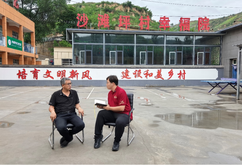 ▲中国人民大学本科生王琪皓访谈沙滩坪村驻村第一书记刘新国