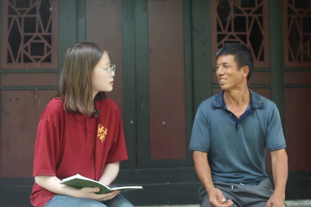 ▲本科生吕思雅访谈德江县玉竹村支部书记安中鹏