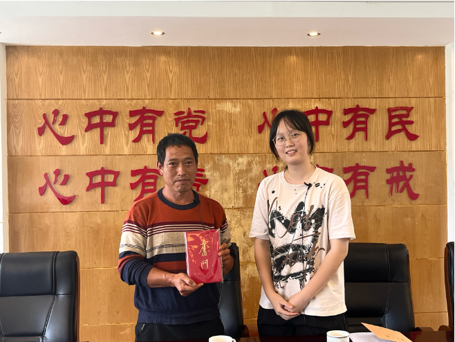 ▲英雄联盟下注 本科生刘燕妮访谈向阳乡旧寨村委会脱贫户户主赵聪林后赠书留念