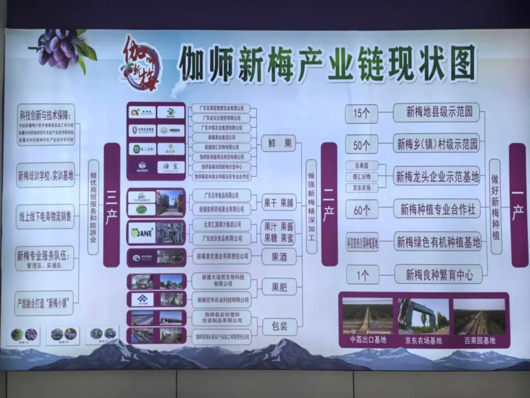 伽师新梅产业构建了完整的产业链体系。在种植环节,产业园采用智能温室大棚、连拱设施大棚、露地栽培等先进技术,示范园成为新梅良种繁育基地。在研发领域,伽师联合成立多个产业技术研究院,开展品种选育、病虫害防治等关键技术攻关。在生产环节,冷链物流体系建成县乡村三级仓储网络,总库容达50万吨,有效延长了产品货架期和市场半径。深加工产品线涵盖果汁、果干、果酒等22个品类,显著提升了产品附加值。此外,产业园积极发展产旅融合,打响新梅品牌。线上依托“京东销售平台+网红直播带货”,线下发挥北京新发地、上海辉展、广州江南、浙江嘉兴、长沙红星、青岛东方鼎市场、百果园等行业领军市场、企业作用,助力伽师新梅走出新疆、走进全国、走向世界。