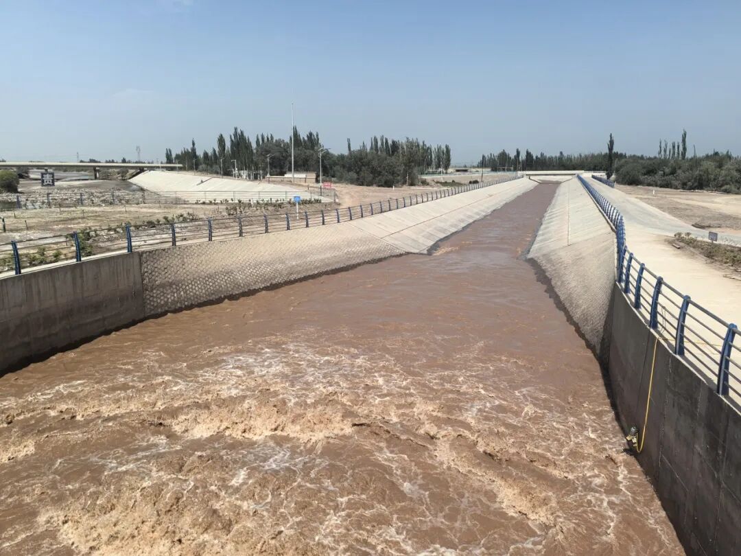 随后,调研团队来到伽师县英阿瓦提渠首参观。英阿瓦提渠首是克孜河上闸堰结合的拦河式引水枢纽,主要功能为引水灌溉及防洪泄洪等。工程于1989年建成并投入运行,并在2024年3月又再次进行除险加固工程,2025年建成后显著提升了下游115.34万亩农田的用水保障率与调控精度,促进了灌区水资源合理调配,有效提升了水资源利用率,为伽师县灌区经济高质量发展提供安全水源保障。