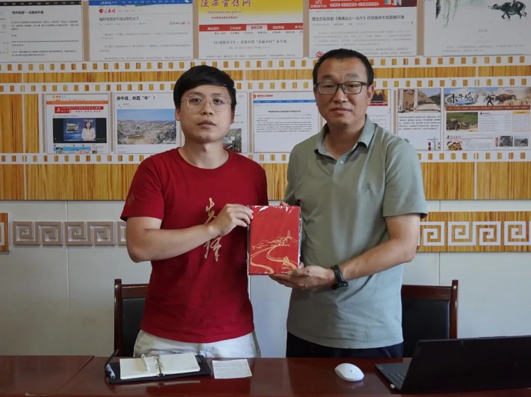 ▲中国人民大学博士生杨隆一访谈佳县农业农村局四级调研员王建华