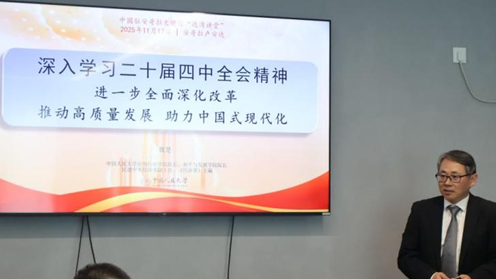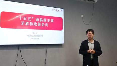 吕一飞围绕“'十五五'面临的主要矛盾和政策走向”作主题汇报,结合经济发展现实,帮助学生深入理解国家经济形势。