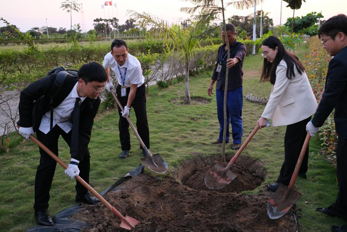 期间,代表团师生扎实开展实践及劳动教育,与工业园代表携手栽种蓝花楹,寄寓着对未来的无限憧憬和美好愿景。