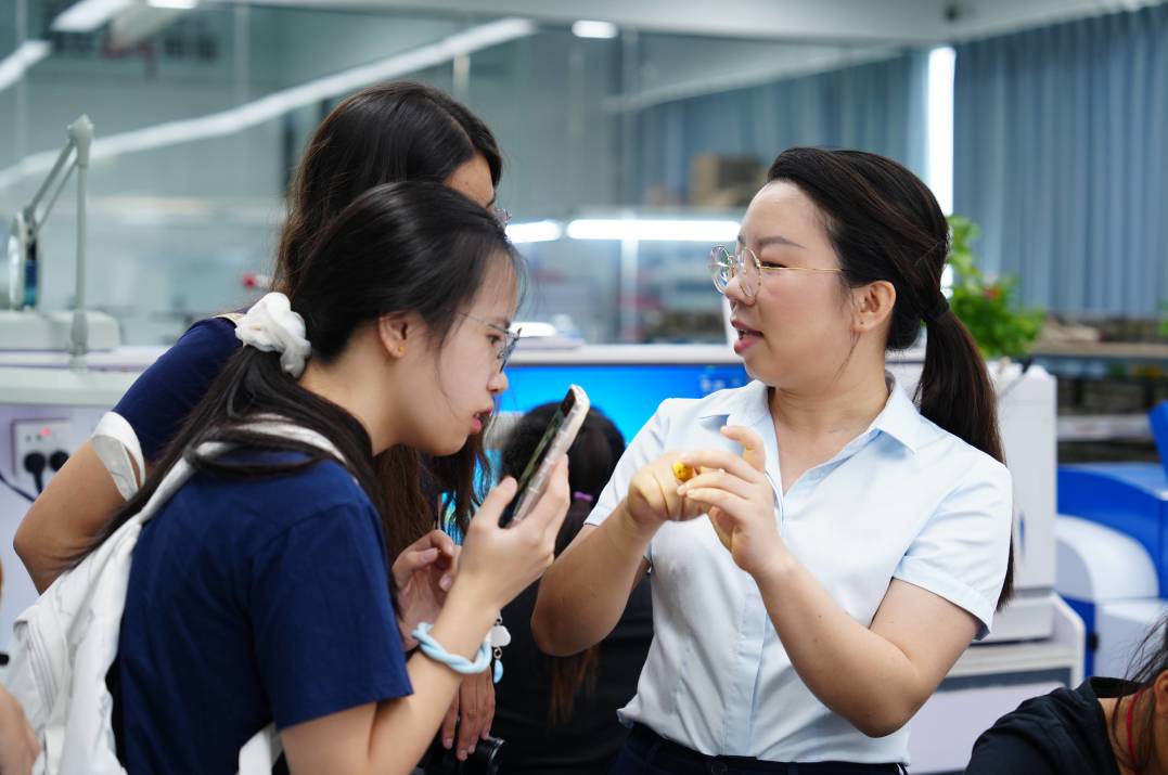 7月27日上午,调研团来到指尖坊黄金珠宝有限公司学习参观企业发展模式。广西罗城指尖坊黄金珠宝有限公司成立于2019年,位于广西罗城深圳路1号,占地面积14836.03平方米,公司目前在职人员130人。公司总部位于深圳市,是一家集设计、研发、生产、销售为一体的黄金珠宝企业。企业秉承“以高品质创造未来”的品牌理念,生产的产品精致、小巧,以设计理念先进、造型独特著称。