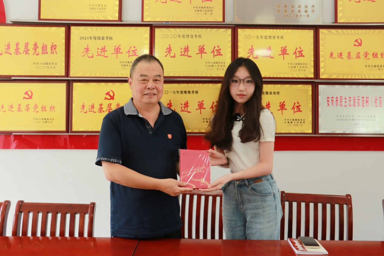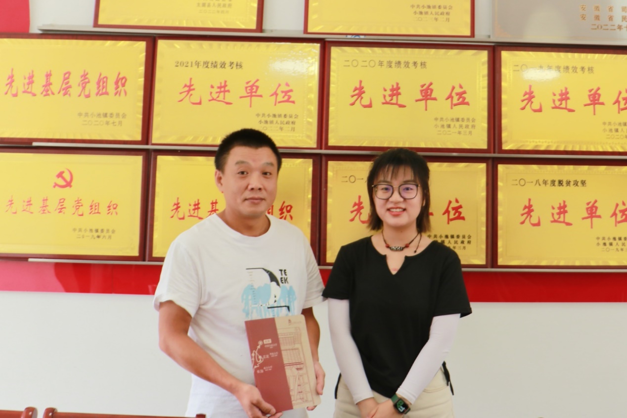 ▲刘松瑞老师与小池镇党委副书记合影