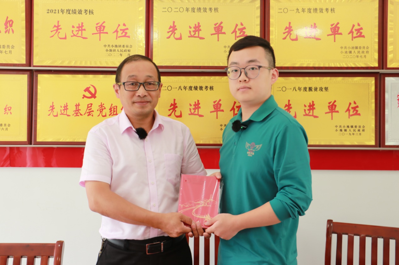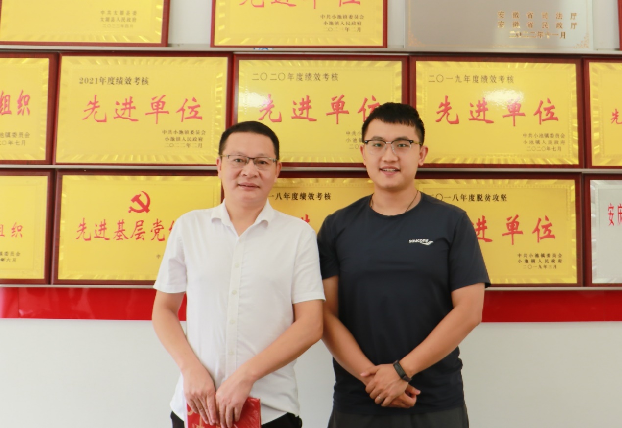▲英雄联盟下注-英雄联盟博彩 本科生胡浩与小池镇石霞村村书记罗本和合影