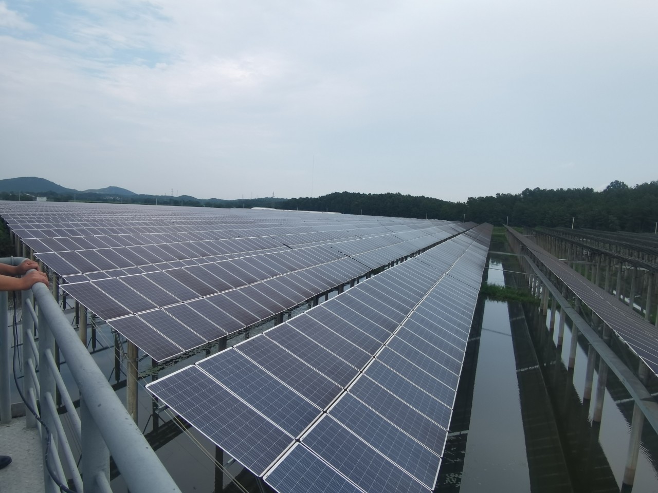 随后调研团前往大塘村光伏发电站调研,参观了地面以上光伏发电、地面以下依湖养鱼的“光鱼互补”模式。值得一提的是,大塘村村民土地大部分自愿交由村集体托管,土地流转由村集体在“四议两公开”之后决定,降低了土地流转交易的成本和难度,集中化和规模化经营提高了土地利用率。村集体将土地出租给种植大户、光伏发电等收取租金,村民按亩数分红,最大程度为村民增收的同时,发展壮大集体经济,为乡村振兴提供夯实基础。