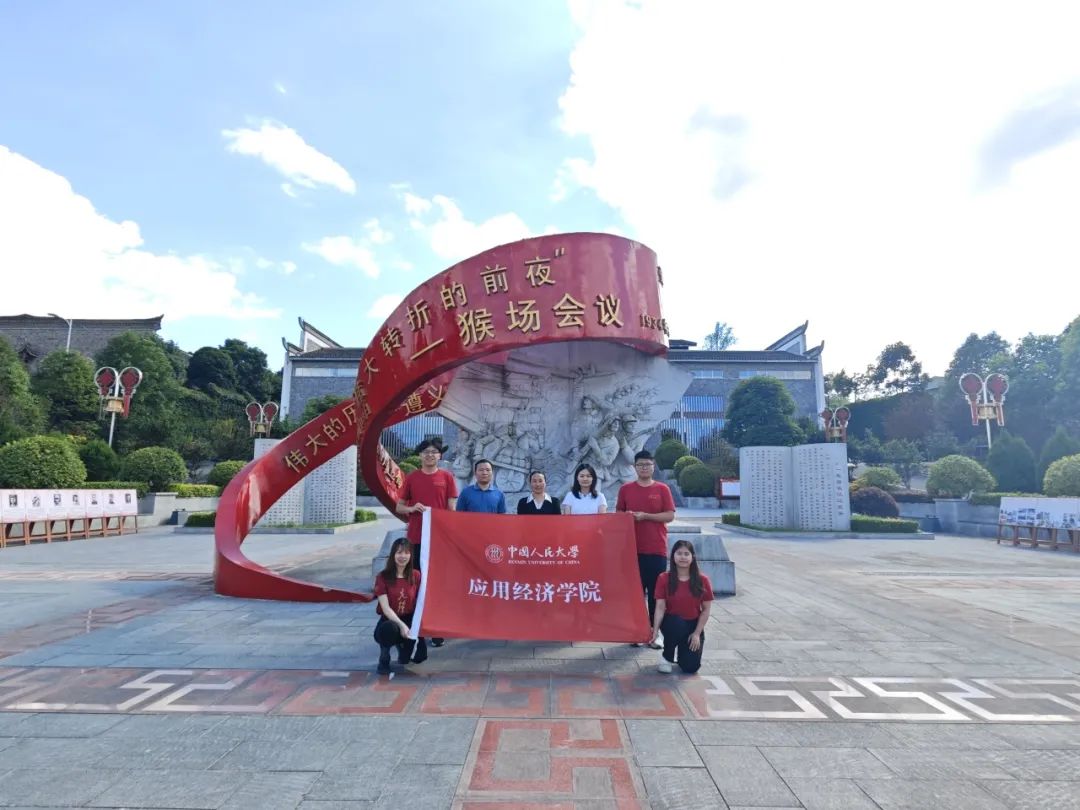 ▲访谈团在猴场会议纪念馆雕塑前合影