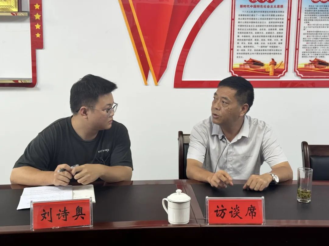 ▲博士生张津硕访谈石阡县龙塘镇党委书记杨正明
