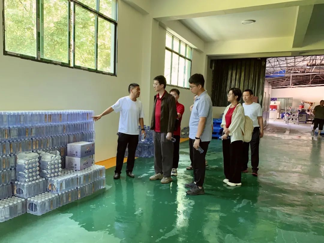 8月14日上午,访谈团到访石阡县大沙坝乡任家寨村。任家寨村位于贵州省铜仁市石阡县大沙坝乡西北部,距集镇10公里,距石阡县城20公里,地域面积4.6平方公里,耕地面积716亩。全村辖8个村民组236户1111人,其中建档立卡户74户282人,已实现全部脱贫,该村的集体经济合作社运营有矿泉水产业与八月瓜果园及加工产业。石阡县因境内地热矿泉有“泉都”之称。已知的自然出露热矿泉20处36个出露点总流量65升/秒,日流量2.23万吨,水温27—55℃。访谈团首先来到黔水一方水厂,矿泉水厂依靠当地丰富的矿泉水资源及水厂的采矿许可资质,生产本村品牌的矿泉水。从矿泉水瓶的冲压生产,到水源的过滤处理,再到最终的封装,目前矿泉水厂已实现全自动化生产,合作社雇佣10个村民管理全厂3条生产线,在正常生产效率下1小时能生产6000瓶矿泉水,每年产品销往贵州本地、四川西藏等周边省份共约50万件。除了生产自身“黔水一方”品牌,水厂还承接旅行社、餐饮集团等公司的定制矿泉水服务。